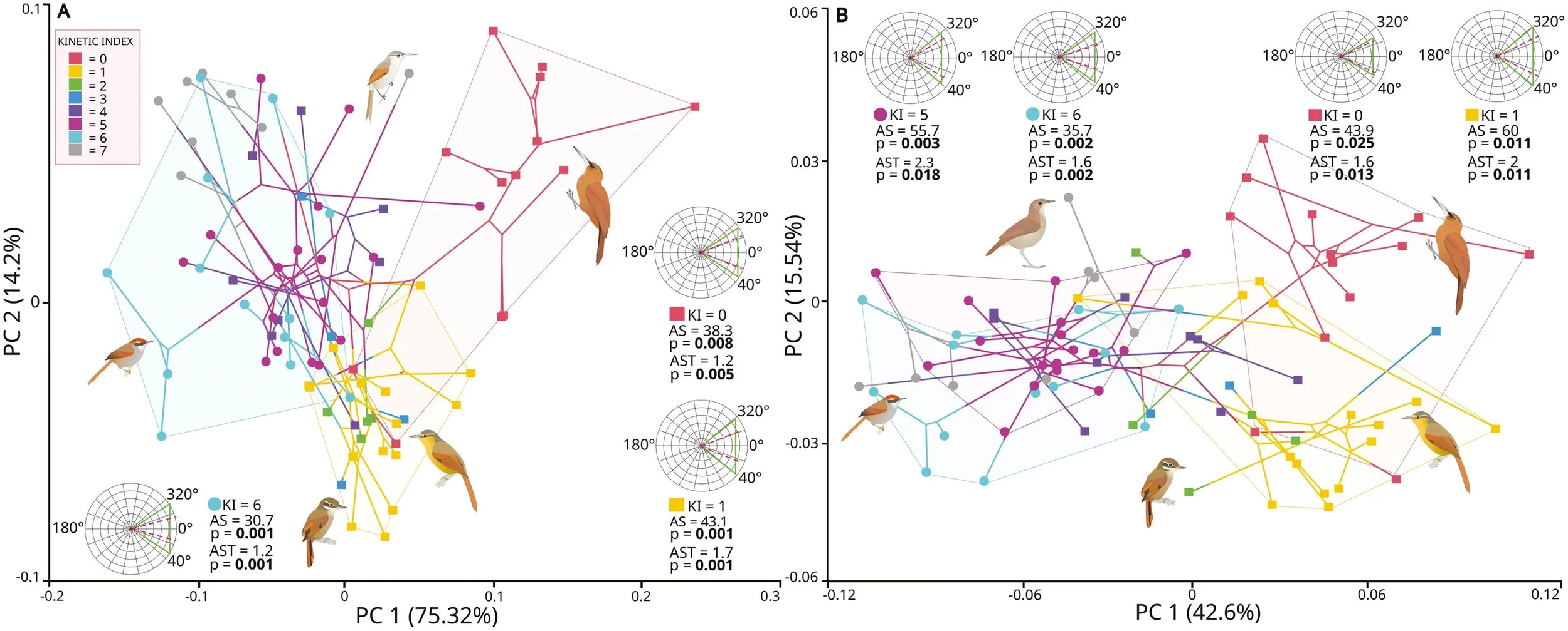 Stefanini MI, Milla Carmona PS, Gómez-Bahamon V, Mongiardino Koch N, Soto IM, Gómez RO, et al. 2025. Craniofacial modularity and the evolution of cranial kinesis in the adaptive radiation of Furnariidae (Aves: Passeriformes). Evolution, 79: 625-640. 10.1093/evolut/qpaf013.